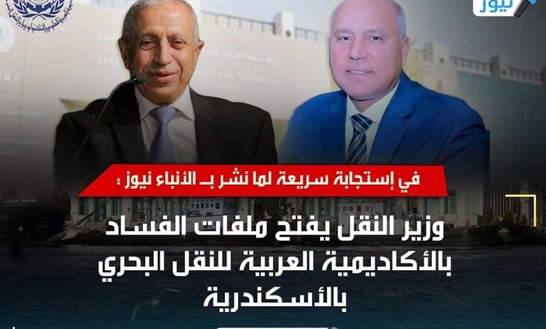 في إستجابة سريعة لما نشر بـ الأنباء نيوز : وزير النقل يفتح ملفات الفساد بالأكاديمية العربية للنقل البحري بالأسكندرية
