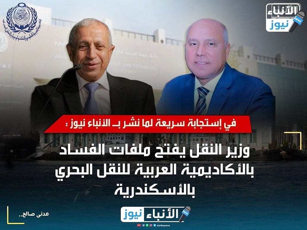 في إستجابة سريعة لما أنفردت به الأنباء نيوز قرر الفريق كامل الوزير وزير النقل فتح ملفات الفساد بالأكاديمية العربية للنقل البحري بتكليف قطاع الشئون القانونية بوزاره النقل بالتحقيق في الوقائع الخطيرة التي تثبت الفساد داخل الأكاديمية العربية للنقل البحري بالأسكندرية .