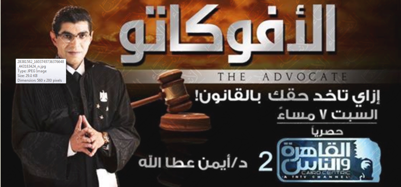 يناقش اليوم السبت  فى تمام  السابعة مساءاً  الدكتور أيمن عطا الله فى برنامجه ” الأفوكاتو” المذاع على  قناة القاهرة والناس ٢ قانون الأحوال الشخصية وما يٌهم المواطن المصرى من هذا القانون ,وقضية نقل حضانة الطفل للأب ويستضيف خالد حسين المحامي بالنقض وأمين صندوق نقابة محامين السويس السابق برنامج الأفوكاتو إخراج وليد الرفاعى.