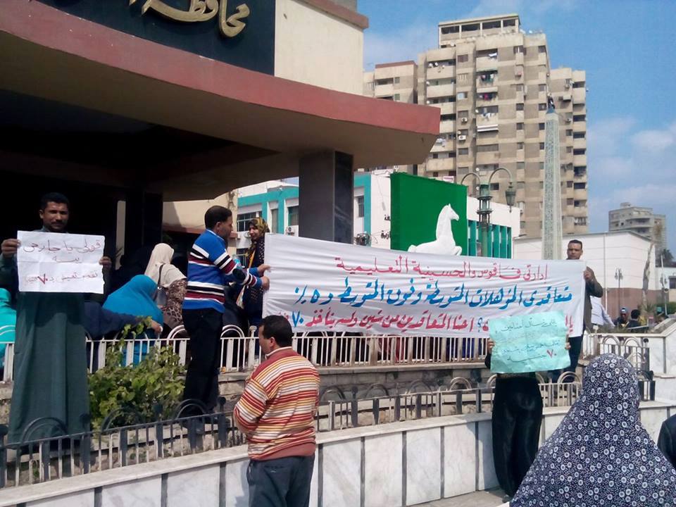 بالصور .. متعاقدى التعليم ينظمون وقفة احتجاجية أمام ديوان محافظة الشرقية للمطالبة بتثبيتهم