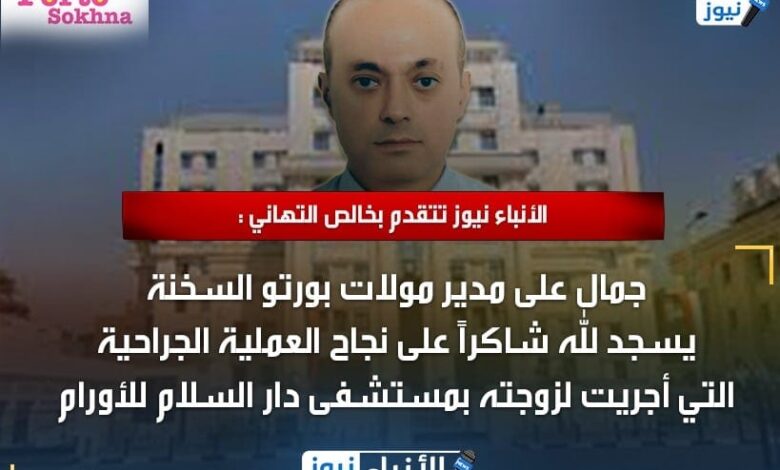 الأنباء نيوز تتقدم بخالص التهاني : جمال على مدير مولات بورتو السخنة يسجد لله شاكراً على نجاح العملية الجراحية التي أجريت لزوجته بمستشفى دار السلام للأورام