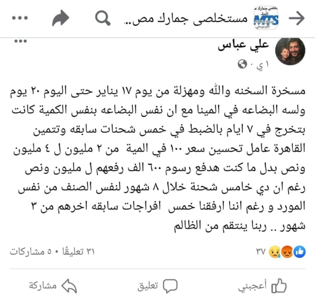 وهو ما لا يدع مجالاً للشك ويؤكد لذوي البصيرة الوطنية أن شركة ((mts)) الخاصة والتي تُدير الجمارك المصرية من الباطن ((تعمل لصالح التوكيلات الملاحية الأجنبية)) ((قولاً واحداً)) بزيادة زمن الإفراج بصورة مبالغ فيها فتلك التوكيلات الملاحية الأجنبية هي المستفيد الوحيد لما يتكبده المستوردين من دفع أرضيات وديمرج بالمواني المصري بلغت مئات الملايين من الدولارات والعُملة الصعبة أنعكست على أسعار كافة السلع المستوردة بالأسواق المصرية بلغت خمسة أضعاف من سعرها العالمي مما يُحمل المواطن المصري أعباء كارثية أدت لعزوف الغالبية العظمي عن الشراء مما أدي إلى حالة كساد وركود قتلت العملية التجارية وساعدت على مزيد من الشلل الإقتصادي في مصر .