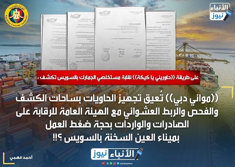 على طريقة ((حاوريني يا كيكة)) نقابة مستخلصي الجمارك بالسويس تكشف : ((مواني دبي)) تُعيق تجهيز الحاويات بساحات الكشف والفحص والربط العشوائي مع الهيئة العامة للرقابة على الصادرات والواردات بحجة ضغط العمل بميناء العين السخنة بالسويس ؟!!