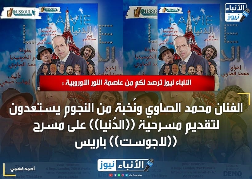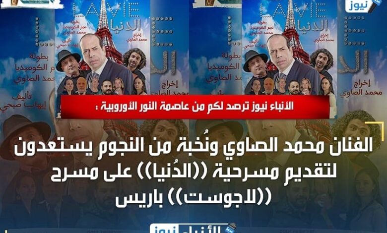 الأنباء نيوز ترصد لكم من عاصمة النور الأوروبية : الفنان محمد الصاوي ونُخبة من النجوم يستعدون لتقديم مسرحية ((الدُنيا)) على مسرح ((لاجوست)) باريس