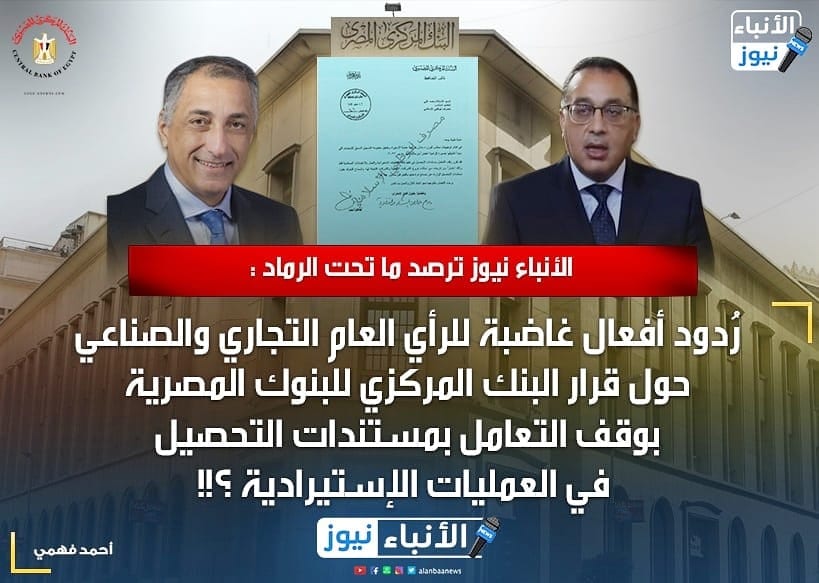 الأنباء نيوز ترصد ما تحت الرماد : رُدود أفعال غاضبة للرأي العام التجاري والصناعي حول قرار البنك المركزي للبنوك المصرية بوقف التعامل بمستندات التحصيل في العمليات الإستيرادية ؟!!