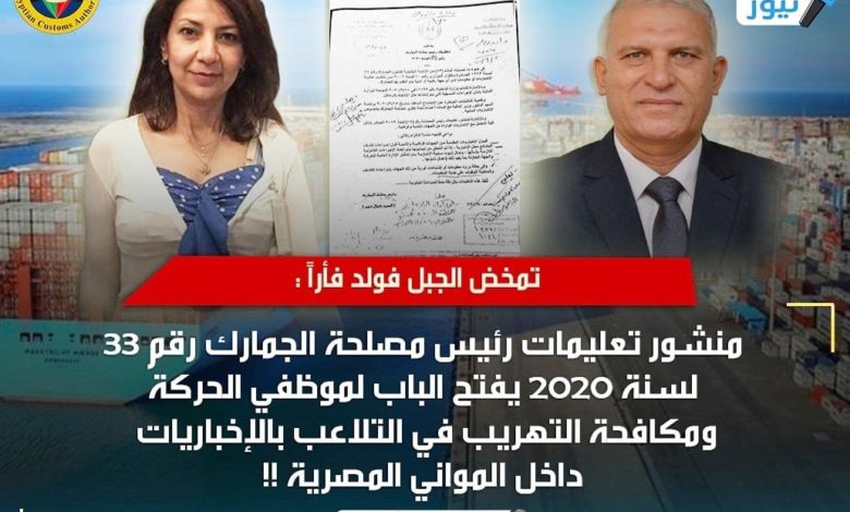 الأنباء نيوز تكشف المستور : منشور تعليمات رئيس مصلحة الجمارك رقم 33 لسنة 2020 يفتح الباب لموظفي الحركة ومكافحة التهريب في التلاعب بالإخباريات داخل المواني المصرية !!