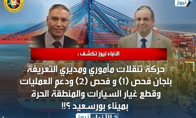 الأنباء نيوز تكشف : حركة تنقلات مأموري ومديري التعريفة بلجان الفحص ودعم العمليات وقطع غيار السيارات والمنطقة الحرة بميناء بورسعيد ؟!!