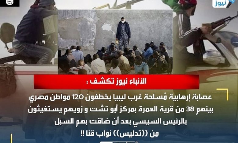 الأنباء نيوز تكشف : عصابة إرهابية مُسلحة غرب ليبيا يخطفون 120 مواطن مصري بينهم 38 من قرية العمرة بمركز أبو تشت و زويهم يستغيثون بالرئيس السيسي بعد أن ضاقت بهم السبل من ((تدليس)) نواب قنا !!