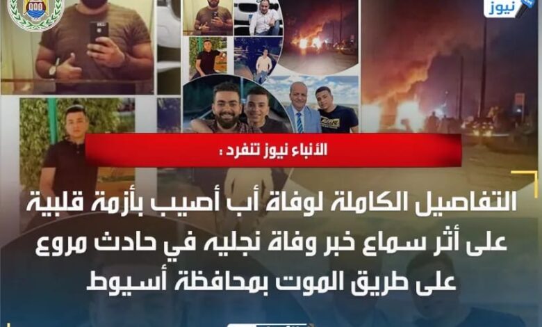 الأنباء نيوز تنفرد : التفاصيل الكاملة لوفاة أب أصيب بأزمة قلبية على أثر سماع خبر وفاة نجليه في حادث مروع على طريق الموت بمحافظة أسيوط
