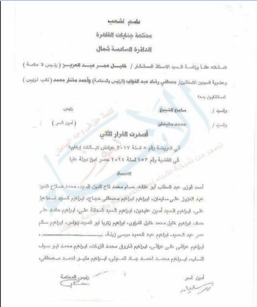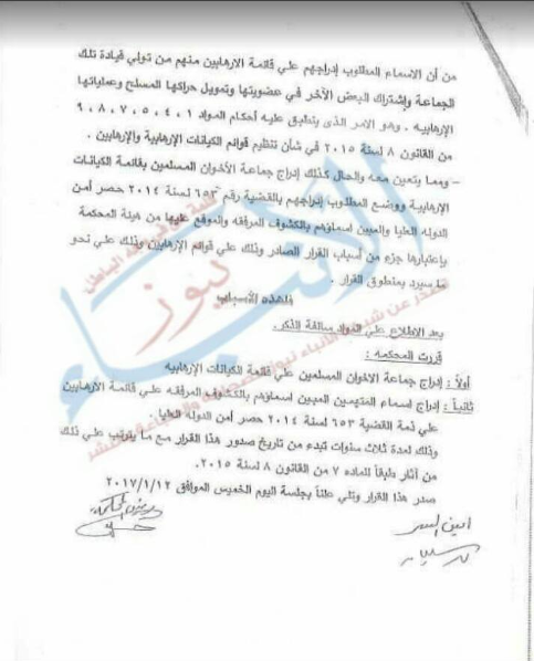 الأنباء نيوز تنفرد بصورة رسمية من أحكام الكيانات الإرهابية بينهم اللاعب السابق أبو تريكة