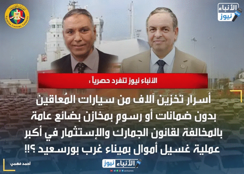 الأنباء نيوز تنفرد حصرياً : أسرار تخزين آلاف من سيارات المُعاقين بدون ضمانات أو رسوم بمخازن بضائع عامة بالمخالفة لقانون الجمارك والإستثمار في أكبر عملية غسيل أموال بميناء غرب بورسعيد ؟!!