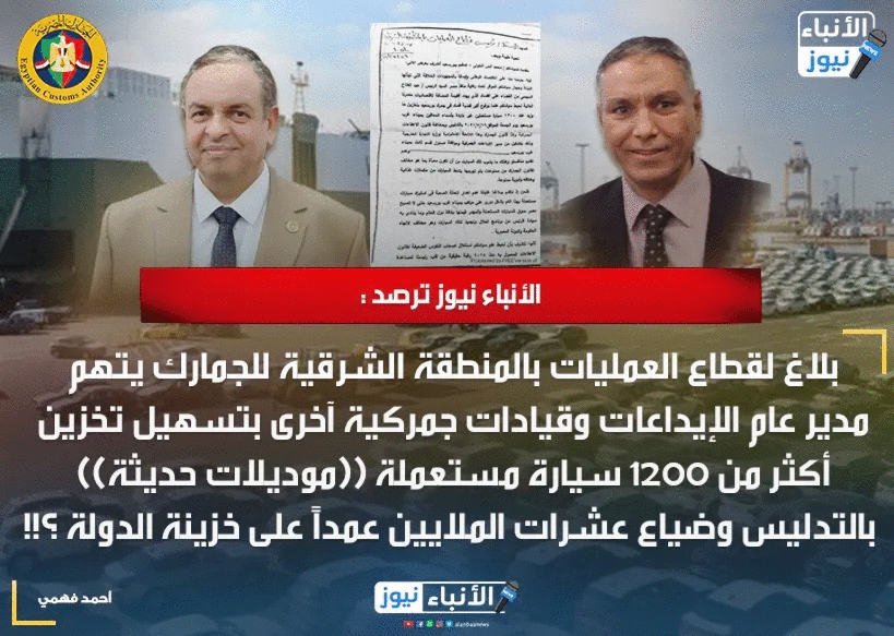 كشف بلاغ تقدم به محمد أنسي الخولي ((مستخلص جمركي)) لرئيس قطاع العمليات بالمنطقة الشرقية للجمارك حمل رقم 1054 في 26 يوليو 2021 عن وقوع أكبر قضية فساد وغسيل أموال في جمارك بورسعيد بتخزين ما يزيد عن 1200 سيارة مُستعملة ((من الأنواع الحديثة)) غير واردة بأسماء المُعاقين بميناء غرب بورسعيد يوم 16 يوليو الماضي وفي سرية تامة بالتدليس وبمخالفة قانون الإعفاءات الجمركية وكذا قانون الجمارك واللائحة الإستيرادية لوزارة التجارة الخارجية .
