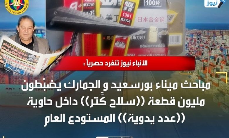 الأنباء نيوز تنفرد حصرياً : مباحث ميناء بورسعيد و الجمارك يضبُطون مليون قطعة ((سلاح كَّتر)) داخل حاوية ((عدد يدوية)) بالمستودع العام