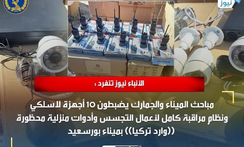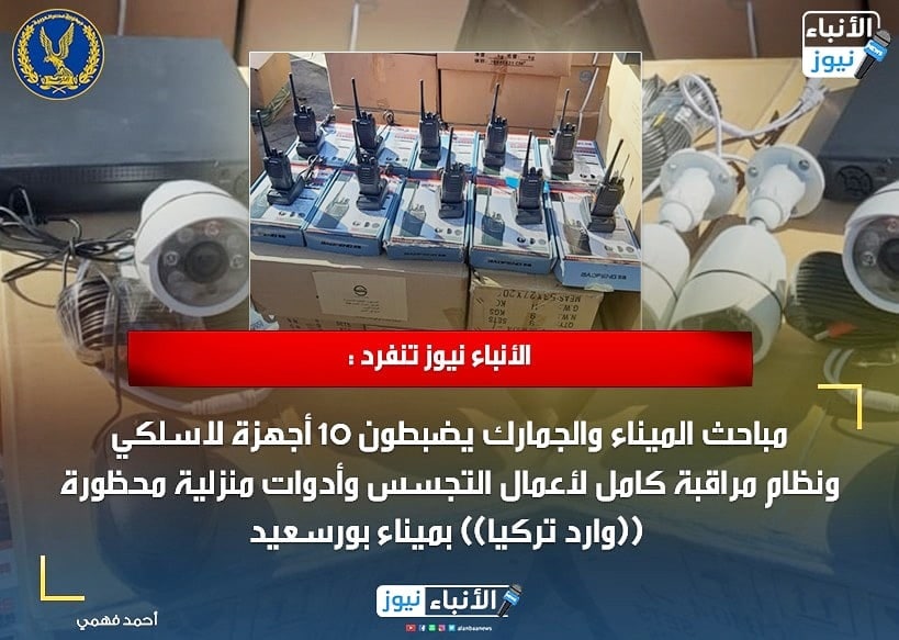 الأنباء نيوز تنفرد : مباحث الميناء والجمارك يضبطون 10 أجهزة لاسلكي ونظام مراقبة كامل لأعمال التجسس وأدوات منزلية محظورة ((وارد الصين)) ومدونة بالأوراق ((تُرمس شاي)) بميناء بورسعيد
