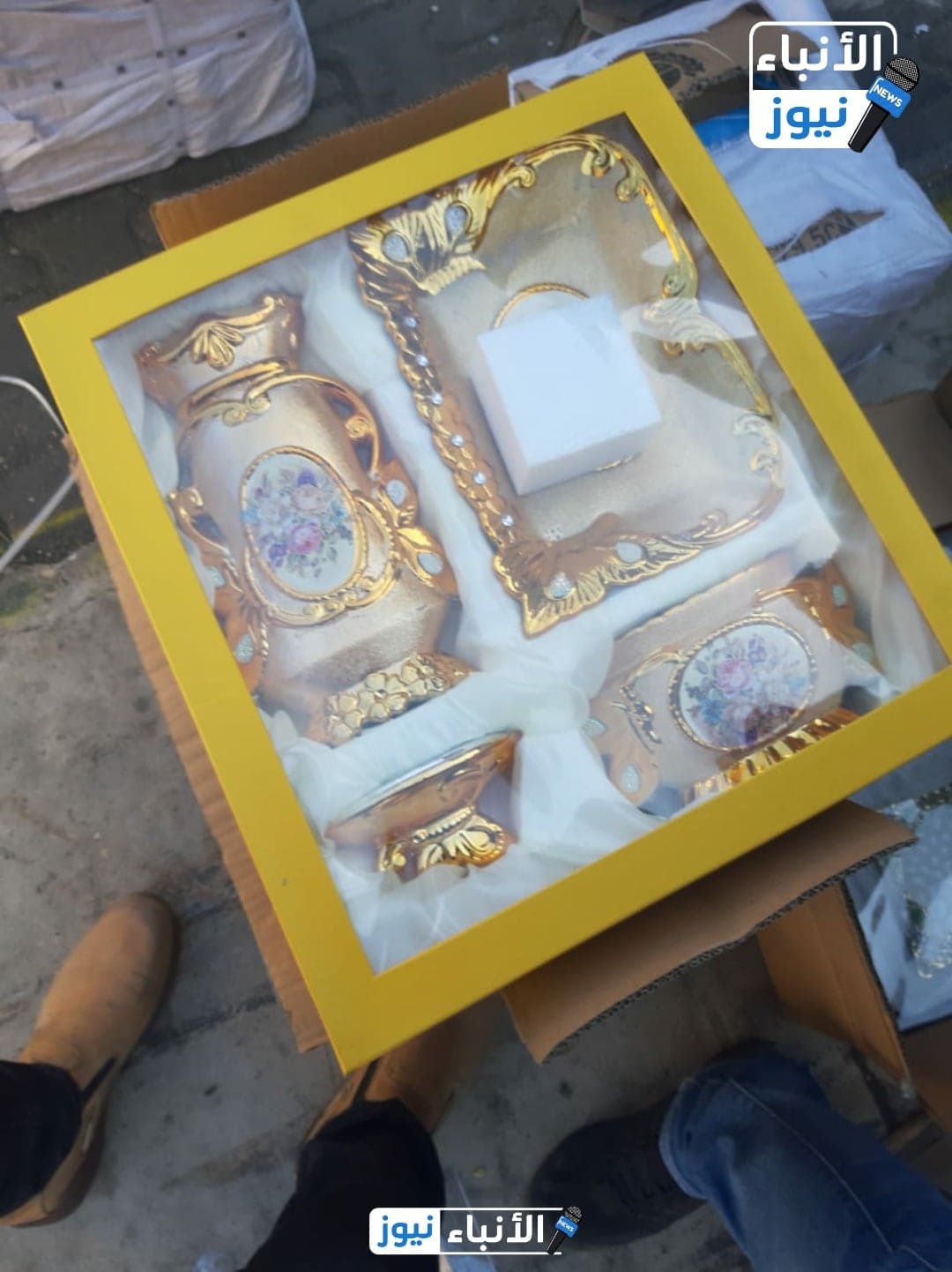كما أحتوت نفس الحاوية على كمية كبيرة من الأدوات المنزلية ((الفايف ستار)) منشأ ((ألماني و صيني)) محظورة إلا أنها كانت مُدونة بالأوراق صنف ((تُرمس شاي)) !!