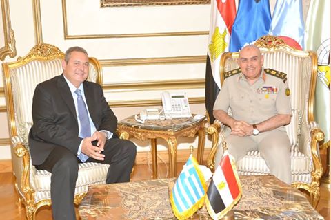 إلتقى الفريق أول صدقى صبحى القائد العام للقوات المسلحة وزير الدفاع والإنتاج الحربى السيد بانوس كامينوس وزير الدفاع اليونانى الذى يزور مصر حالياً على رأس وفد رفيع المستوى يضم رئيس هيئة الأركان العامة وعدد من قادة القوات المسلحة اليونانية فى زيارة عمل تستغرق يومين .