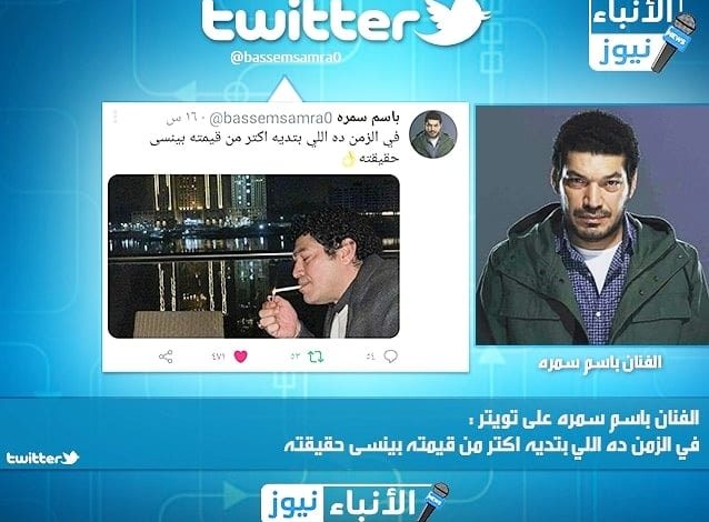 الفنان باسم سمرا على تويتر : ‏في الزمن ده اللي بتديه اكتر من قيمته بينسى حقيقته !!