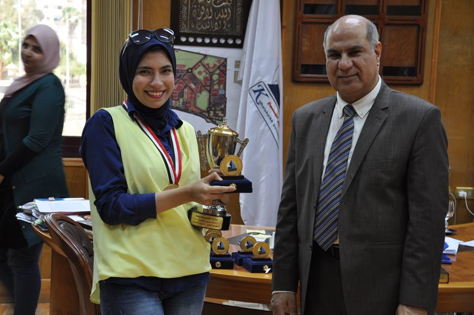 كرم الأستاذ الدكتور ماجد القمرى رئيس جامعة كفر الشيخ, اليوم الأربعاء الطالبة أمنية صبرى مرسي لفوزها بالمركز الأول على مستوى جامعات مصر فى مسابقة العزف الفردى وذلك بعد إجتيازها التصفيات النهائية مع الجامعات المشاركة وقد حصلت فيها على المركز الأول فى عزف آلة القانون ضمن فعاليات البطولة الصيفية للجامعات المصرية المقامة بإستاد مدينة أبو قير بالأسكندرية. ومن جانبه أكد القمرى حرص الجامعة على تشجيع الأنشطة الطلابية بكافة أنواعها لتنمية المواهب للوصول إلى أعلى المراكز .