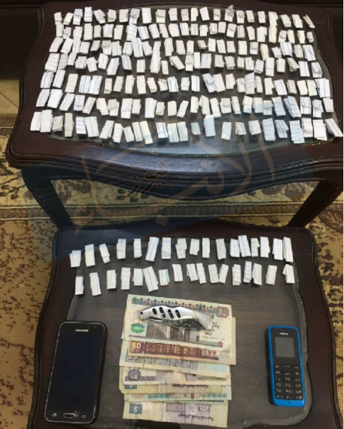 بضبط كل من محمد إبراهيم محمد 24 سنة عاطل وشهرته “بركوتة” ومقيم بالغابة بمركز أبوكبير ومحمد صلاح عطية 19 سنة عاطل ومقيم بذات العنوان وبحوزتهما “210” تذكرة هيروين ومطواة قرن غزال ومبلغ “230” جنيه.