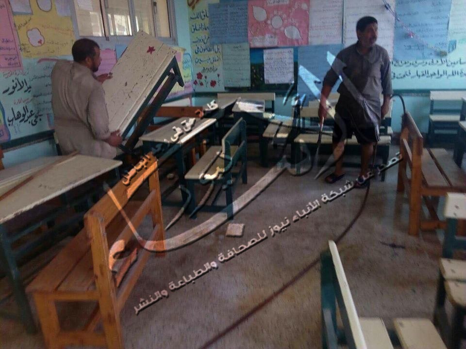 ورش المياه على سلم المدرسة وغسل دورات المياه استعداداً للعام الدراسي وذلك بمشاركة كلا من احمد رجب وكيل المدرسة ومدين مصطفي وسعيد فوزي ورضا العربي وعبد الفتاح لاشين وعددا من العمال وعبر عددا من الاهالي عن فرحتهم بهذا العمل مؤكدين ان هذا يعتبر نموذجا مشرفا للمدرس والقائد الناجح مطالبين جميع مديري المدارس باتخاذه قدوة وقال عبد الرحمن عبد اللطيف مدير المدرسة إنه على الرغم أن اليوم الجمعة إجازة رسمية إلا أن المعلمون حرصوا على التوجه للمدرسة وقاموا بارتداء زي العمل بمشاركة العمال ورفعوا القمامة وأوراق .