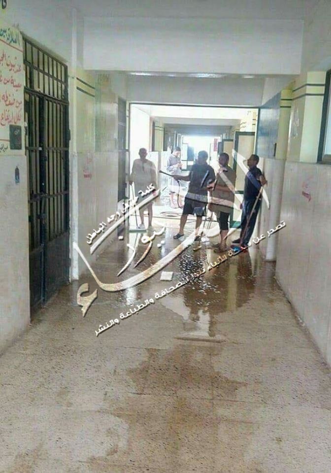 الأشجار المتساقطة ومسح المدرسة ورشها بالمياة قائلا: أننا جميعا نعمل من أجل الصالح العام .