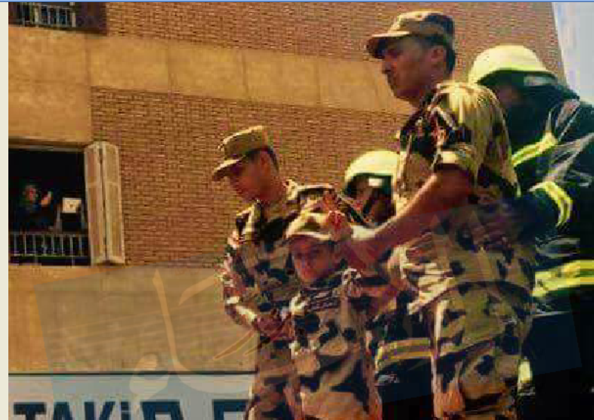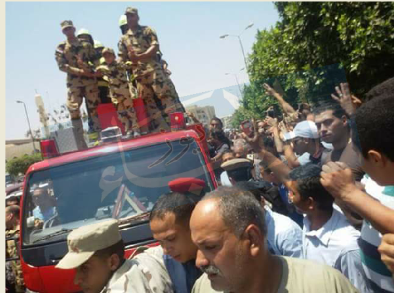 وشهدت الجنازة مشهد حزين حيث ارتدى نجل الشهيد الطفل حمزة 9سنوات بدلة عسكرية واعتلى السيارة التى تحمل جثمان والده الشهيد مما أبكى جميع الحاضرين .