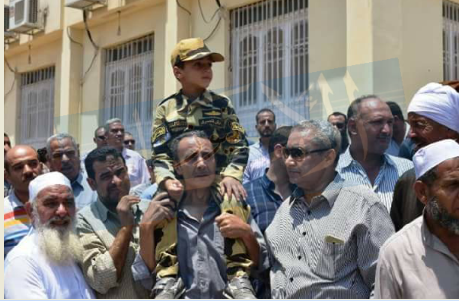 بالصور وفى مشهد مأساوى حزين نجل الشهيد المقدم أحمد منسى يتقدم جنازة والده بالعاشر من رمضان مرتدياً الزى العسكرى