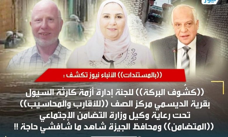 ((بالفيديوهات)) و ((بالمستندات)) الأنباء نيوز تكشف : ((كشُوف البركة)) للجنة إدارة أزمة كارثة السيول بقرية الديسّمي مركز الصف ((للأقارب والمحاسيب)) تحت رعاية وكيل وزارة التضامن الإجتماعي ((المتضامن)) ورجاله ومحافظ الجيزة شاهد ما شافشي حاجة !!