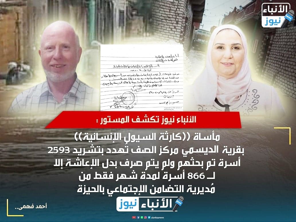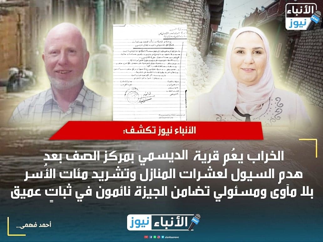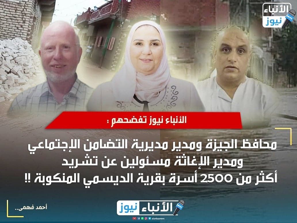 محافظ الجيزة ومدير مديرية التضامن الإجتماعي ومدير الإغاثة مسئولين عن تشريد أكثر من 2500 أسرة بقرية الديسّمي المنكوبة !!