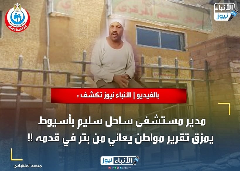 بالفيديو | الأنباء نيوز تكشف : مدير مستشفى ساحل سليم بأسيوط يمزق تقرير مواطن يعاني من بتر في قدمه !!