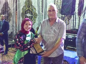 وأهدى الدكتور مجدي عزت، رئيس نادي الشرقية، درع النادي للفنانين نادية مصطفي وحلمي عبدالباقي، تقديراً لهم.