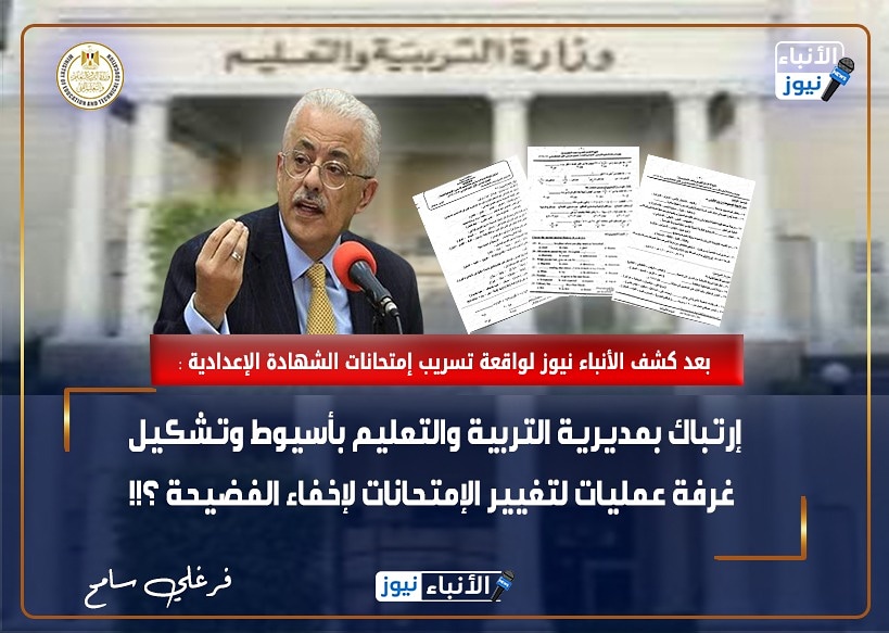 بعد كشف الأنباء نيوز لواقعة تسريب إمتحانات الشهادة الإعدادية : إرتباك بمديرية التربية والتعليم بأسيوط وتشكيل غرفة عمليات لتغيير الإمتحانات لإخفاء الفضيحة ؟!!
