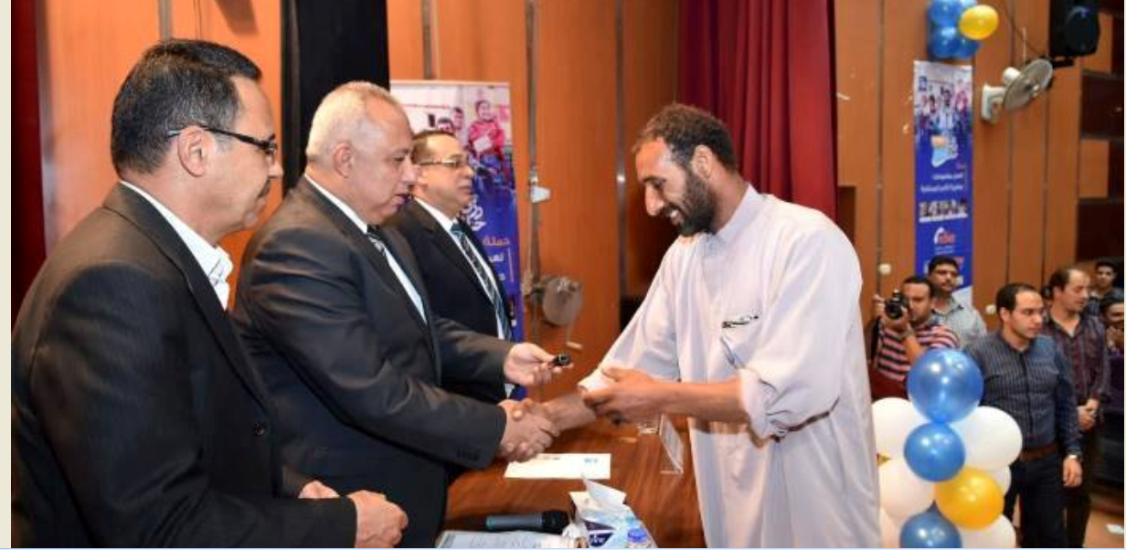 قام اليوم الخميس اللواء خالد سعيد محافظ الشرقية بتوزيع عدد 34 تروسيكل مقدمة من مؤسسة صناع الحياة مشروع رزق حلال على الأسر المستحقة من أبناء المحافظة و ذلك في إحتفالية أقامتها مؤسسة صناع الحياة بالشرقية بحضور علي عبد الرحمن مدير مديرية التضامن الإجتماعي وهشام دويدار المدير التنفيذي لمؤسسة صناع الحياة بمكتبة مصر العامة بمدينة الزقازيق و ذلك في إطار إحتفالات محافظة الشرقية بعيدها القومي .