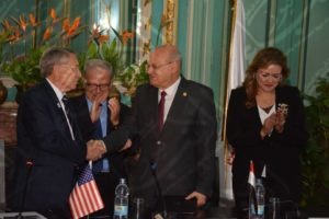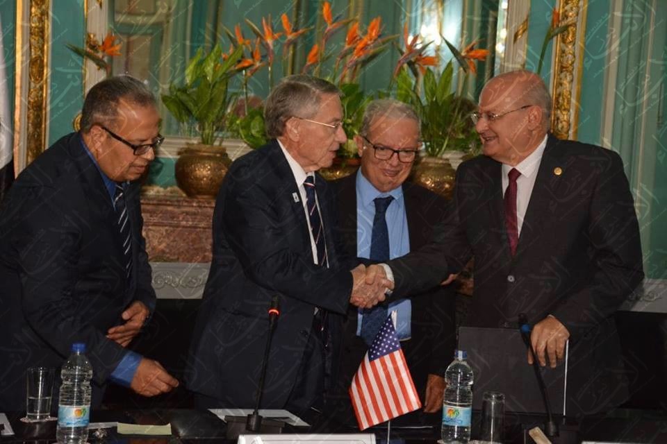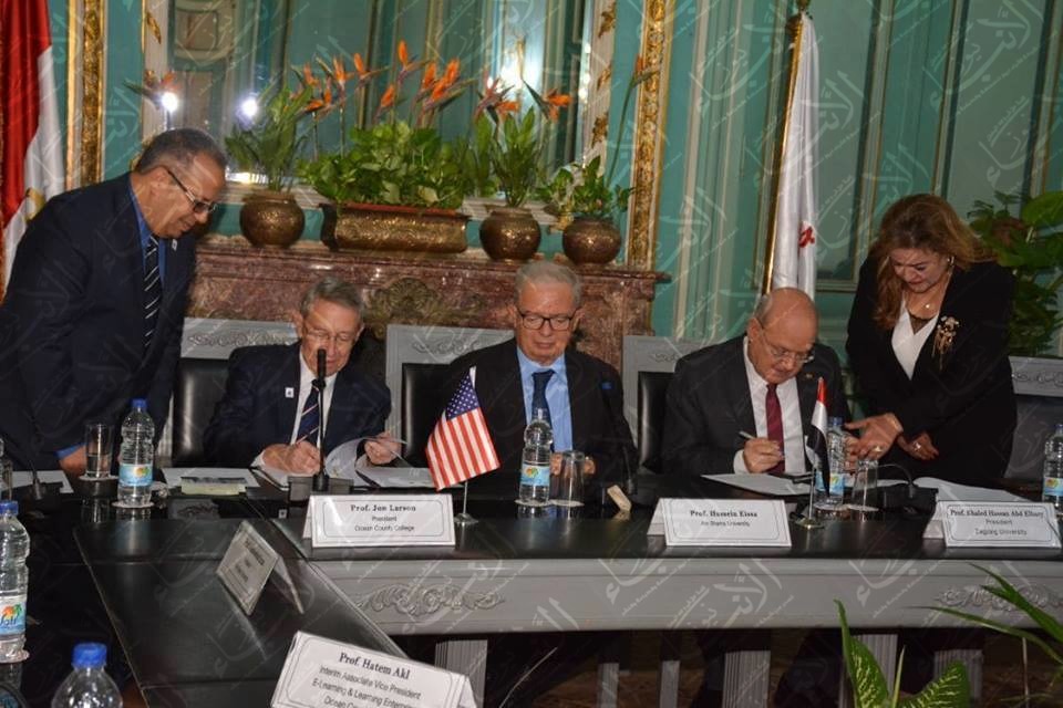 وقع الدكتور  خالد عبد الباري رئيس جامعة الزقازيق و الدكتور جون لارسون رئيس جامعة أوشن كونتى بولاية نيوجيرسي الأمريكية بروتوكول تعاون بين الجامعتين لإنشاء كليات مجتمعية بالجامعة، بحضور د. عبد الوهاب عزت رئيس جامعة عين شمس ، وا.د مايسة ابو يوسف مساعد نائب رئيس جامعة اوشن للشئون الدولية وا. د.حنان السعيد مدير التعليم الإلكترونى المدمج بجامعة عين شمس ومنسق المشروع، وذلك بمقر جامعة عين شمس.