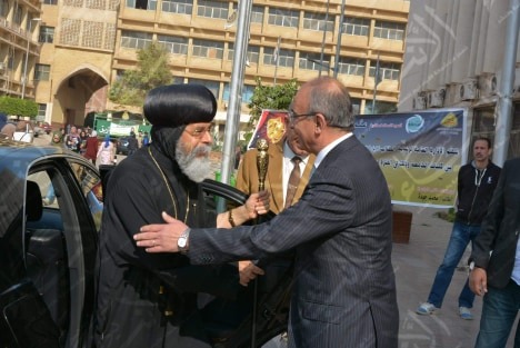 ومن جانبه أبدى د.عثمان شعلان سعادته بتشريف قداسة الأنبا والوفد الكنسى المرافق له وحرصهم على تقديم التهنئة وزيارة الجامعة ، مؤكداً علي أهمية تبادل الزيارات بين الجامعة والكنيسة و تفعيل دور رجال الدين في مواجهة التطرف الديني و تصحيح المفاهيم الخاطئة لدي الشباب وتنميتهم اجتماعياً من خلال رفع مستواهم الثقافي والديني والأخلاقي .