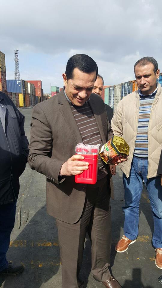 فيما تشكلت لجنة جمركية لكشف محتويات الحاوية برئاسة حسنى فياض مدير عام الوارد بجمارك بورسعيد حيث تبين أن الحاوية بها 490 كرتونة صواريخ وألعاب نارية محظور إستيرادها تابعة لشركة الفيروز لصاحبها الشربينى محمد مصطفى وعنوانها البساتين بالقاهرة بينما تم إبلاغ يوسف حسنى رئيس الإدارة المركزية للمكافحة بمصلحة الجمارك والدكتور مجدى عبد العزيز رئيس مصلحة الجمارك لإخطار الدكتور عمرو الجارحى وزير المالية لتحريك الدعوة الجنائية ضد المتهمين الهاربين .