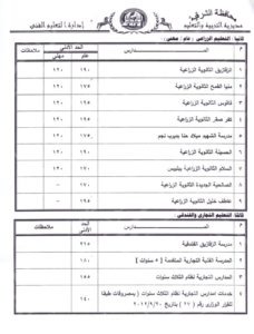 كما إعتمد المحافظ تنسيق القبول بالمرحلة الثانوية للتعليم الفني للعام الدراسي 2019 2020 وتقرر أن يكون الحد الأدنى لكل نوعية من نوعيات التعليم الفني صناعي – زراعي – تجاري ومدارس التعليم والتدريب المزدوج .