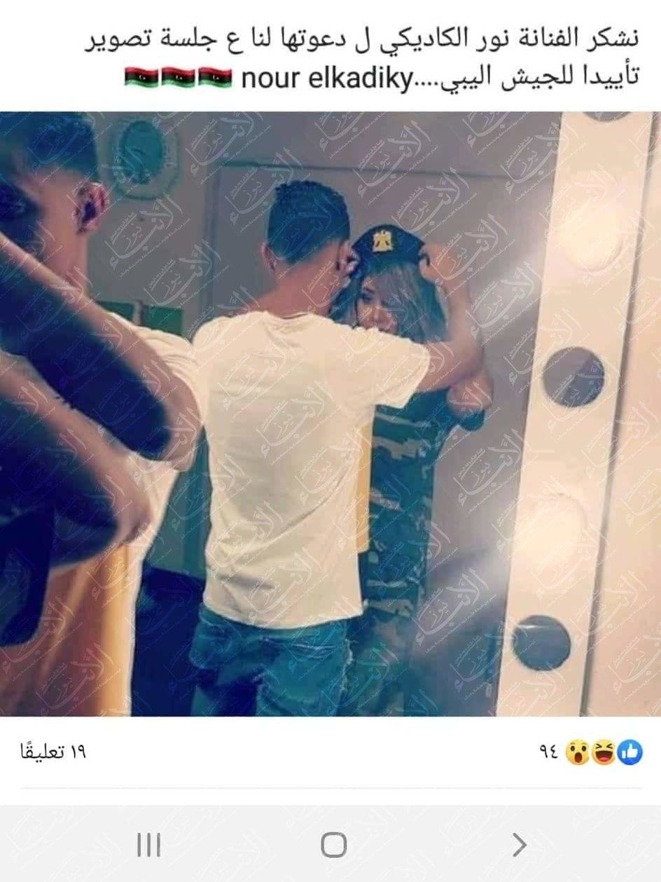 ظهور جديد للنجمة نور الكاديكى بزى الجيش الليبى دعماً للقوات المُسلحة الليبية وللمشير خليفة حفتر فى حربهم ضد الجماعات الإرهابية