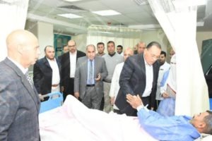 عقب انهيار عقار فاقوس ومصرع اثنان وإصابة آخران محافظ الشرقية يزور المصابان بالمستشفى للاطمئنان على حالتهما الصحية
