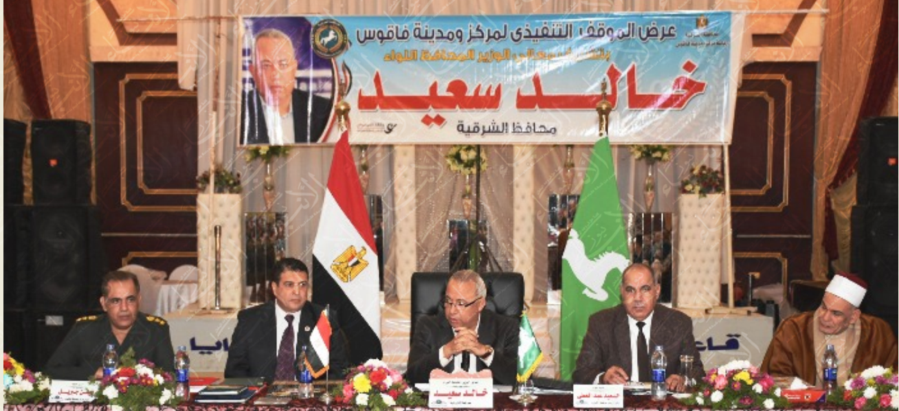في تقليد جديد قام اللواء خالد سعيد محافظ الشرقية بترأس إجتماع المتابعة الإسبوعي بمركز ومدينة فاقوس لمتابعة الموقف التنفيذي للمشروعات التنموية والخدمية الجاري تنفيذها على أرض المحافظة ولمناقشة المشكلات والمعوقات التي تقف حائلاً أمام سرعة الإنتهاء من تنفيذها لتدخل الخدمة وتعود بالنفع والفائدة على أبناء المحافظة وذلك بحضور اللواء السعيد عبد المعطي السكرتيرالعام ومديري المديريات الخدمية ورؤساء المراكز والمدن والأحياء ومديري الإدارات النوعية بالديوان العام .