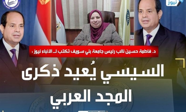 د. فاطمة حسين نائب رئيس جامعة بني سويف تكتب لـ الأنباء نيوز : السيسي يُعيد ذكرى المجد العربي
