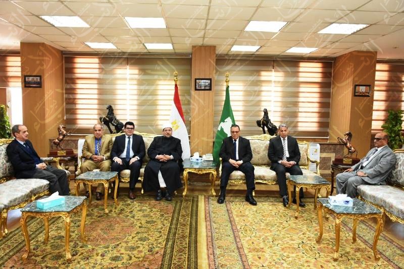 استقبل  اليوم الجمعة  الدكتور ممدوح غراب محافظ الشرقية الدكتور محمد مختار جمعة وزير الأوقاف، بمكتبة بالديوان العام في حضور الدكتور أحمد عبد المعطي نائب المحافظ و اللواء عاطف مهران مساعد وزير الداخلية مديرأمن الشرقية و اللواء حسين الجندي السكرتير العام للمحافظة و اللواء السعيد عبد المعطي الخبير الوطني للتنمية المحلية و مستشار المحافظ للمشروعات والشيخ زكريا الخطيب وكيل وزارة الأوقاف وذلك في إطار زيارته لمحافظة الشرقية لمشاركته أهالي المحافظة في افتتاح مسجد ابراهيم عبد الرحمن بعزبة البيه التابعة لرئاسة مركز ومدينة ههيا.