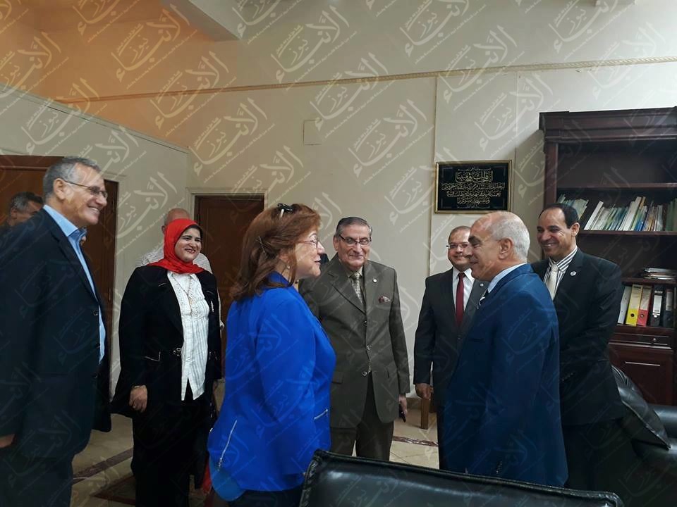 وتطبيقها بالثورة المرجوة وفقا للتوجهات الفكرية والفلسفية والفنية لإنشاء هذه الصيغة المدرسية. وعقب الندوة التقت النائبة فايقة فهيم بنواب رئيس الجامعة؛ د. عبد الحكيم نور الدين نائب رئيس اللجامعة لشئون التعليم والطلاب ، ود. عبد الله عسكر نائب رئيس الجامعة لشئون خدمة المجتمع وتنمية البيئة ، ود. ميرفت عسكر نائب رئيس الجامعة لشئون الدراسات العليا والبحوث .