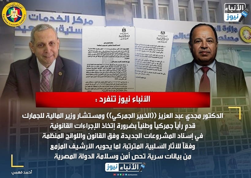 الجدير بالذكر أن د. مجدي عبد العزيز مستشار وزير المالية للشئون الجمركية قدم رأياً وطنياً في وقت سابق من شهر يناير 2021 الماضي مواجهاً كارثة شركة mts وعملية ((أرشفة بيانات مصلحة الجمارك السيادية)) على منصة ألكترونية غير مسيطر عليها من مسئولي الجمارك وقاطعاً الشك باليقين في تلك المسخرة الجمركية الغير دستورية والغير قانونية والتي تضر بالمصالح العليا للدولة .