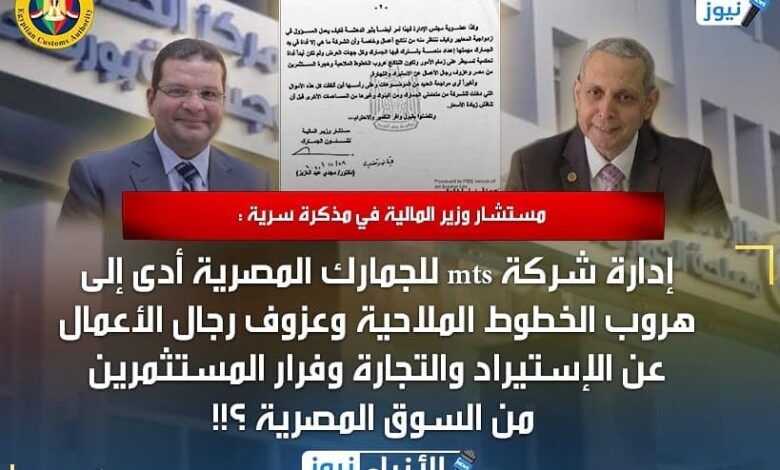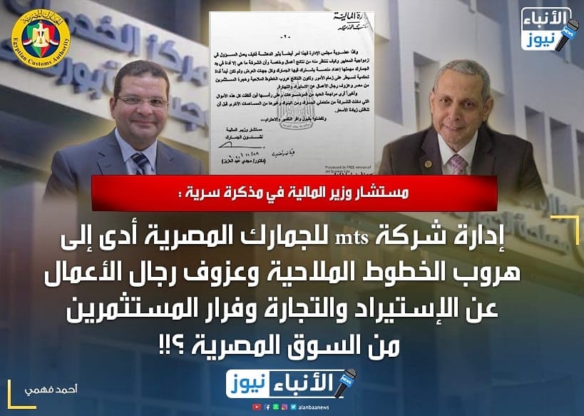 مستشار وزير المالية في مذكرة سرية : إدارة شركة mts للجمارك المصرية أدى إلى هروب الخطوط الملاحية وعزوف رجال الأعمال عن الإستيراد والتجارة وفرار المستثمرين من السوق المصرية ؟!!
