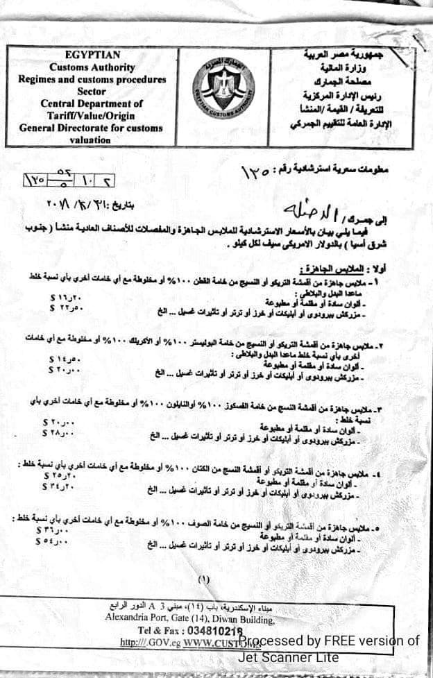إنه من العجب العجاب أنك لن تجد نظاماً جمركياً فى العالم يعاملك بالكيلو لوزن المنسوجات والملابس المستوردة إلا فى الموانى المصرية وعلى العكس يذهب كلاً منا لشراء بنطلون أو قميص أو جاكيت أوحتى عبايات أو لانجرى أو طُرح حريمى بالكيلو بل يتم البيع بالقطعة إلا أن من إخترع نظام المحاسبة بالوزن فى الجمارك المصرية أهدر الملايين من المال العام تارة بالمحاسبة بالأوزان وأهدر ملايين أكثر تارة آخرى من التلاعب بمشمول أوزان الملابس والمنسوجات المزورة .