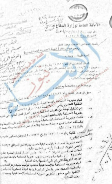 وفوجئ المشتري بقيام عدد من الموظفين بهيئة المساحة بالإسماعيلية والقاهرة بتزوير خطابات من نائب رئيس هيئة عمليات القوات المسلحة، تؤكد أن الأرض تتبع الجيش، مما دفع المشتري بالتقدم ببلاغ رسمي للنائب العام للتحقيق في وقعة التزوير حمل رقم 10643 عريضة بتاريخ 13 اغسطس الماضي، وبلاغ أخر للرقابة الادارية، بعد حصوله من الجيش علي ما يفيد أن هذة الخطابات غير تابعة لنائب رئيس هيئة عمليات الجيش، مما يعد تزويرًا بأسم المؤسسة العسكرية وتوقيع خطابات للضغط عليه ومساومته في مساحه قدرها 2،5 فدان من الأرض لموظفين المتهمين. تقدم المواطن ببلاغ لرئيس هيئة المساحة بالقاهرة والذي أوصي بإستبعاد هيئة المساحة بالآسماعيلة وتكليف مساحة الشرقية بإنهاء إجراءات تسليم الأرض لمالكها الشرعي، إلا أن رئيس الهيئة تراجع في قراره منعاً لأحالة موظفيه للتحقيقات بتهم الامتناع عن تأدية واجبتهم وتزوير خطابات للمؤسسة العسكرية علي حد قول المشتري، وطبقا للمستندات التى معه .