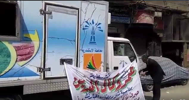 نائب سكندرى يضع لافتاته بتوفير السلع الغذائية على سيارات شركة المجمعات الإستهلاكية
