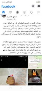 وطالب رواد موقع ” الفيسبوك ” بضرورة فضح أمثال هذا المنتسب لمهنة التدريس والمستتر وراء الأعمال الخيرية مطالبين أيضًا بفتح تحقيق عاجل لكشف الحقائق للرأي العام خاصة وأن المجتمع الحمادي تحكمه القبلية والأعراف حفاظًا علي سلامة المجتمع من أمثال هؤلاء .