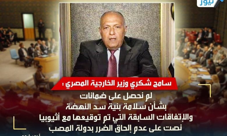 وزير الخارجية في مجلس الأمن : لم نحصل على ضمانات بشأن سلامة بنية سد النهضة والإتفاقات السابقة التي تم توقيعها مع أثيوبيا نصت على عدم إلحاق الضرر بدولة المصب